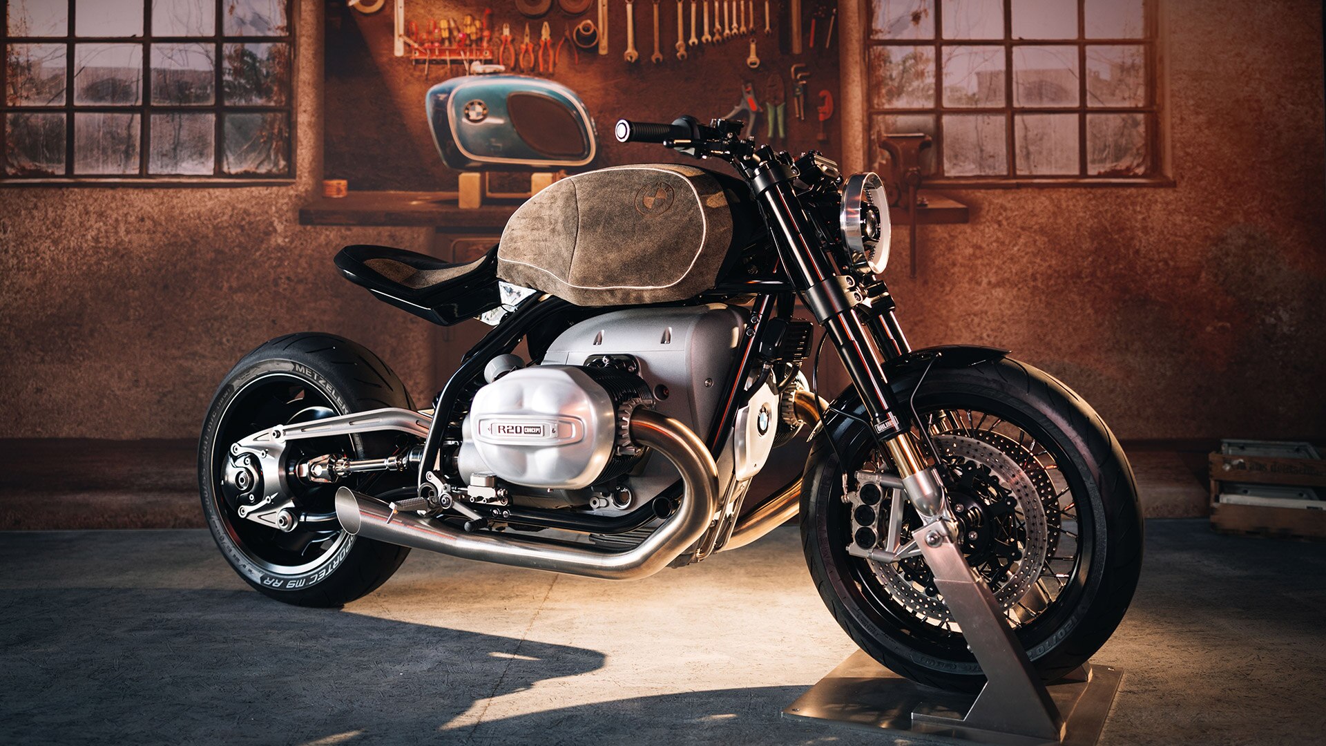 It wouldn’t be the BMW Motorrad Days without what is sure to be the most exciting concept vehicle of the year. With its powerful retro design, the BMW R20 Concept is reminiscent of the legendary BMW Motorrad bikes of the 1930s, while offering state-of-the-art technology and futuristic performance at the same time. In light of the BMW Motorrad Days’ homecoming as the event returns to Garmisch-Partenkirchen, the R20 Concept was presented in a very fitting way: the tank was adorned with lederhosen-style buckskin by Meindl Fashion.