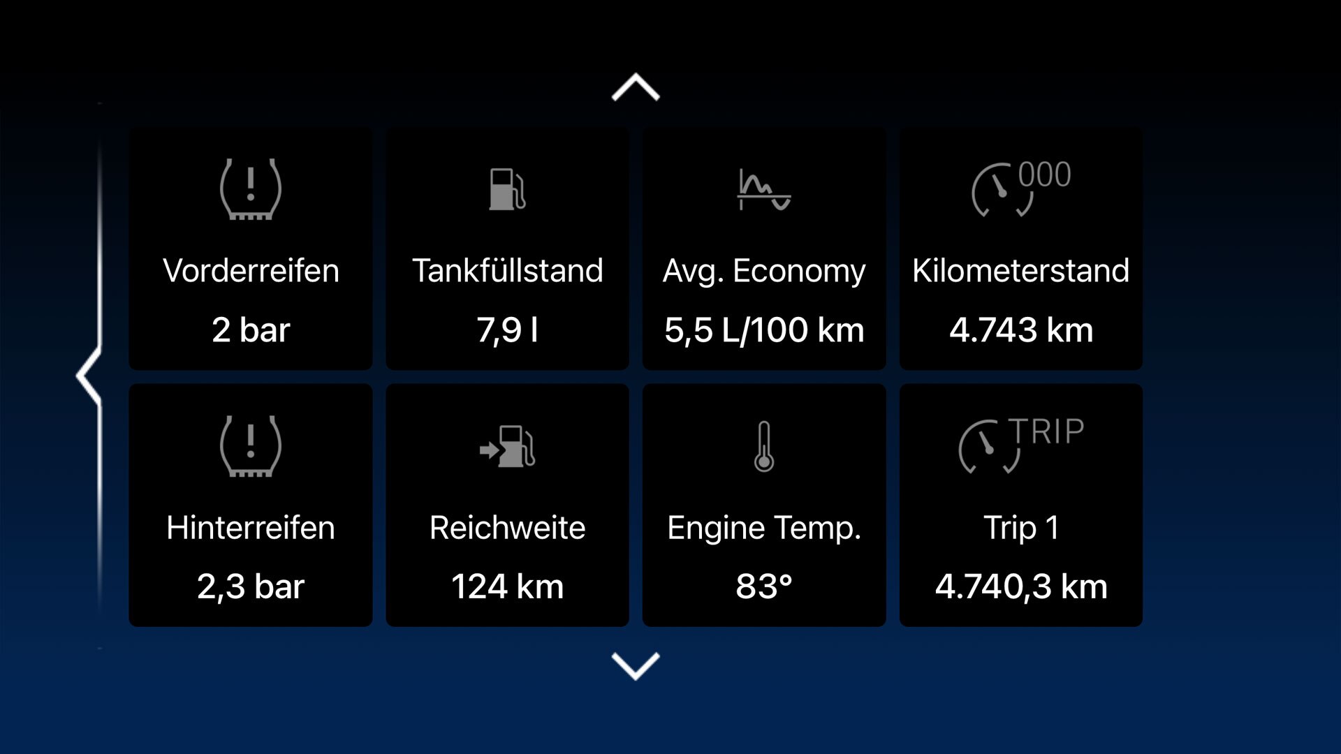 The BMW Motorrad Connected app is the key to the BMW Motorrad ConnectedRide Cradle. Once paired with the app’s Connectivity Hub, you can access its functions with the Multi-Controller. The navigation system will take you to your next destination along the best routes using the map and arrow view, while also grating you access to your route data after having arrived. The Bike Info area also provides you with all important vehicle data, such as tyre pressure, fuel gauge and range.